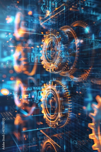 High-Tech Gears and Holographic Overlays Depicting Advanced Engineering Concepts for Digital Design
