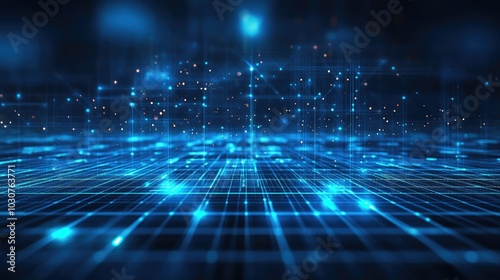 High-tech glowing grid and abstract geometric shapes representing digital transformation and technology processes