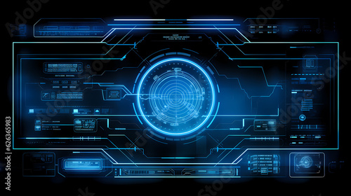High-tech holographic interface with futuristic elements and ample copy space. Sci-fi themed designs.