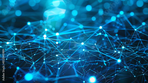 High-tech logistics nodes networked with bright cerulean blue connections, clear and vibrant,