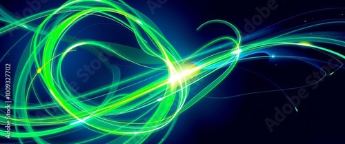 High-Tech Luminous Spirals in Abstract Metallic Background