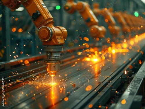 High-tech robotic automation in manufacturing, robots performing precision tasks in a futuristic factory