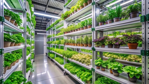 High-tech vertical farm cultivating superfoods for sustainable urban dining, vertical farm, advanced technology