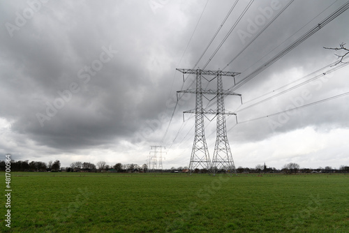 High-Voltage Mast or pylon with powerlines to transport electricity