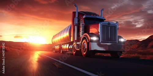 Highway horizons road. Transportation and Oil Industry at Sunset. Powering Business in the Transport Sector