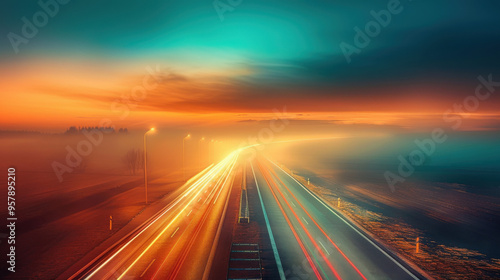 Highway in the Mist at Sunset