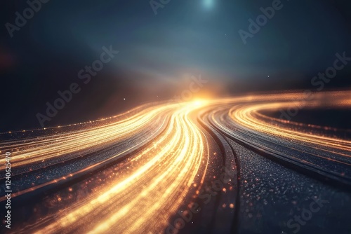 Highway speed light with an abstract speed light trails effect path, fast moving neon futuristic technology background, motion effect, curve of neon bright in future virtual reality, created by