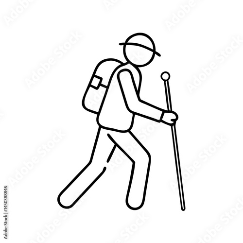 hiker with walking stick icon, hiker with walking stick line art - simple line art of hiker with walking stick, perfect for hiker with walking stick logos and icons