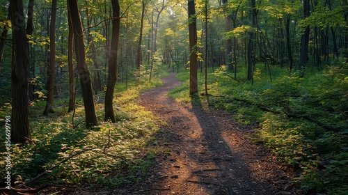Hiking a scenic local trail through dense forest,