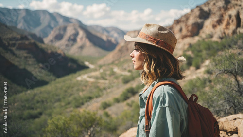 Hiking through stunning mountain landscape with a female adventurer