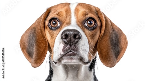 Hilarious Close-up of Surprised Beagle Dog with Enormous Eyes, Isolated on White Background