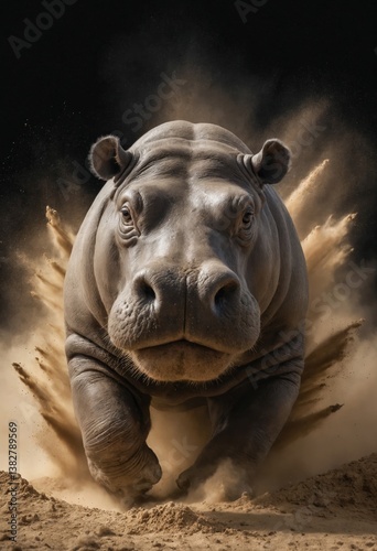 Hippopotamus Wild Animal Elegant Dramatic Portrait On A Mist Dark Background