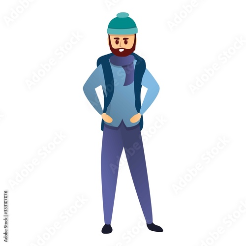 Hipster hiking man icon. Cartoon of hipster hiking man vector icon for web design isolated on white background
