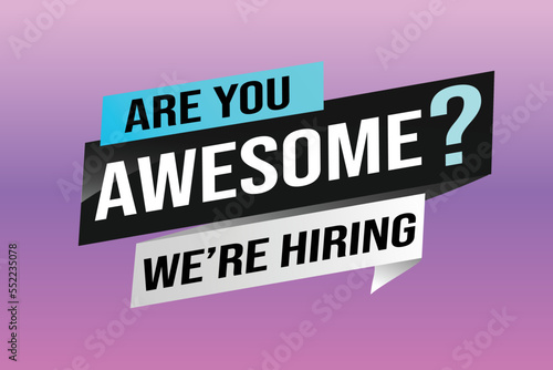 hiring recruitment Join now design for banner poster. are you awesome? lettering with geometric shapes lines. Vector illustration typographic. Open vacancy design template modern concept