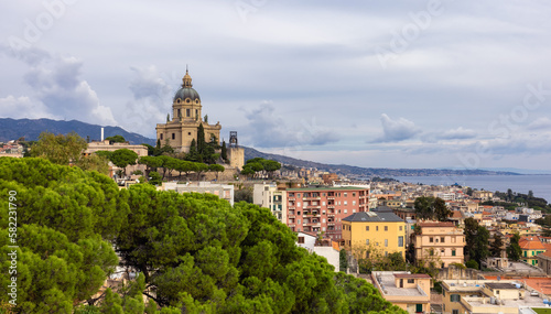 Historic Church in a touristic city Messina, Sicilia, Italy. Cloudy Sky