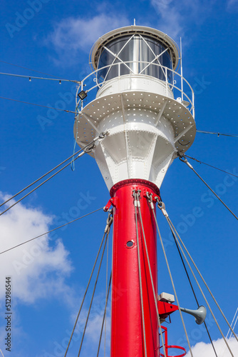 Historic lighthouse on a ship in the harbor of Emden, Germany