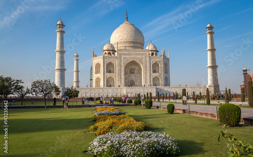 Historic Taj Mahal with a clear blue sky - A UNESCO World heritage site.