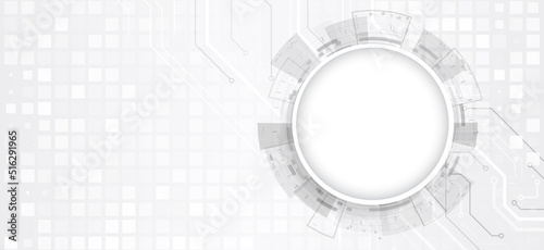 Hi-tech vector illustration with various technology elements. Abstract global sci fi concept. Digital internet communication on grey background. Wide Cyber security internet and networking concept.