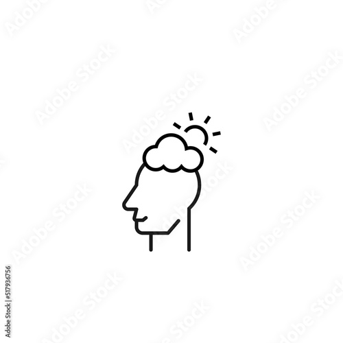 Hobbies, thought and ideas concept. Vector sign drawn in flat style. Editable stroke. Line icon of sun above cloud over head of man