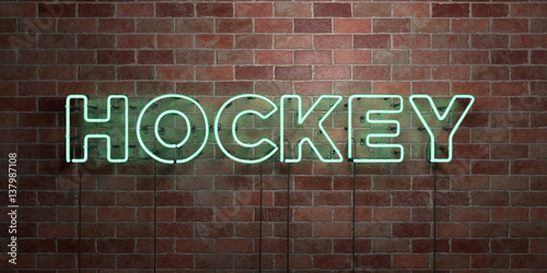 HOCKEY - fluorescent Neon tube Sign on brickwork - Front view - 3D rendered royalty free stock picture. Can be used for online banner ads and direct mailers..