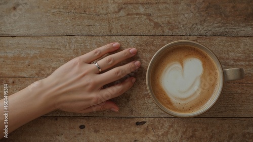 Holding a cup of caffelatte against a wooden backdrop just for you