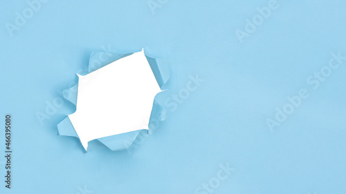Hole of torn blue paper.Torn hole in blue paper texture with copy space.