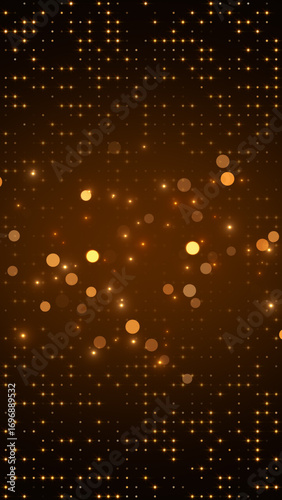 holiday christmas and happ new year background with golden shiny glitter stars and bokeh lights on black background, abstract vertical social media background