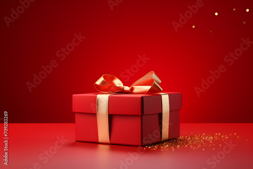 Holiday Product Showcase An elegant product showcase with a red gift box on a red background, ideal for Valentine and Christmas. Generative AI,