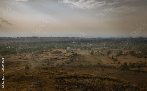 Holkarwadi, Pune ghat hill view on beautiful evening before rain. Top view from the mountain makes the scene amazing.
