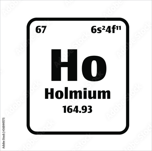 Holmium (Ho) button on black and white background on the periodic table of elements with atomic number or a chemistry science concept or experiment.