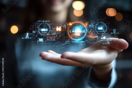 Holo Display. Futuristic blue holographic digital interface hovering o