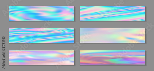 Hologram blurred banner horizontal fluid gradient unicorn backgrounds vector collection. Bokeh