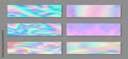 Hologram creative banner horizontal fluid gradient unicorn backgrounds vector set. Fairy hologram