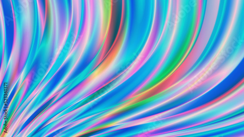 Hologram Effect Dynamic Structure Vector Multicolor Vibrant Abstract Background. Iridescent Holographic Multicoloured Bright Wavy Pattern Modern Vivid Gradient Wide Wallpaper. 3D Rendered Illustration