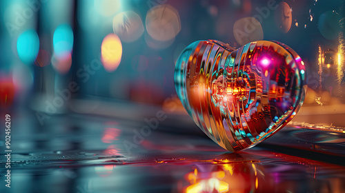 Hologram Love Scammer Hacking Heart-Shaped Safe with Digital Interface and Cyber Security Concept