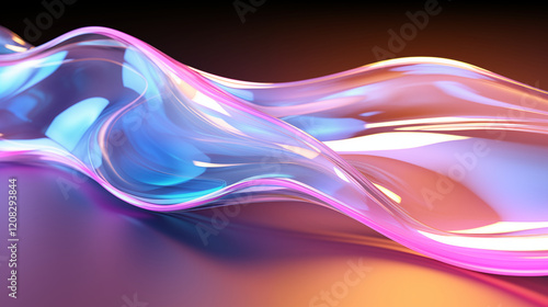 Holographic 3D icon of a house, with a futuristic iridescent gradient that shifts between pastel blues, pinks, and purples, featuring smooth edges.