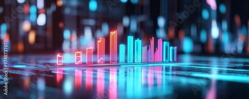 Holographic ad campaign analysis, data-driven strategy, neon-lit background