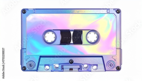 Holographic Audio Cassette Tape Isolated on Transparent Background