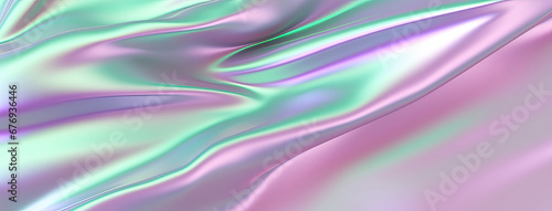 Holographic background in 80s style. Iridescent wavy gradient cloth.