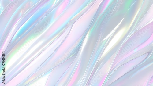 Holographic background seamless trendy iridescent light foil texture. Soft holographic pastel unicorn marble background pattern. Modern pearlescent blurry abstract swirl illustration.