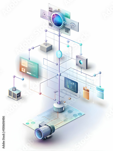 Holographic Campaign Finance Flowchart: Wide Shot of Complex Financial Processes with Glowing Arrows, Dollar Symbols, and Clean Copy Space for Marketing Concepts