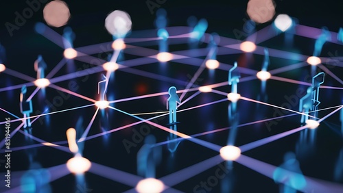 holographic close up people networking soft bokeh glowing lines connection in dark background