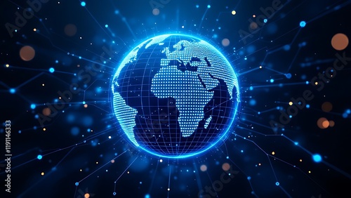 Holographic globe in a polygonal mesh 3D illustration. Business globalization, digital data planet, cyber security in the network. Online sales and marketing