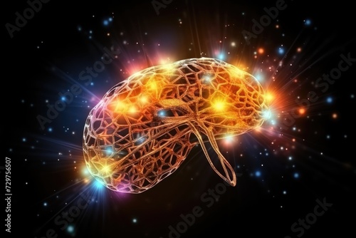 Holographic human brain, 3D, technology, neon , Generative by Ai