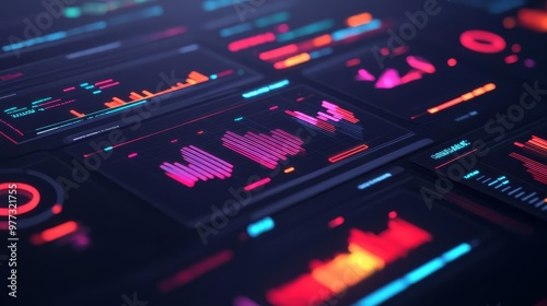 Holographic interactive UI feedback platforms, glowing analytics, modern software