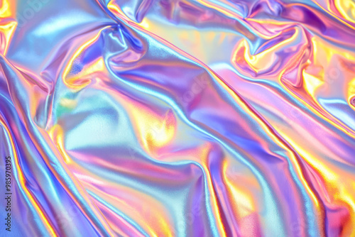 Holographic iridescent surface wrinkled foil. Abstract iridescent holographic cloth background.
