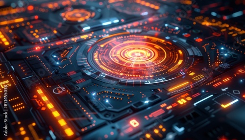 Holographic malware scanner glowing neon dark background advanced cybersecurity tech
