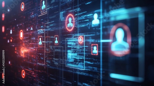 Holographic selection board displaying profile of top job candidate glowing icon next each one indicating key strength futuristic take talent selection using advanced digital effect glowing icon