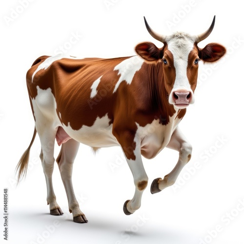 Holstein Cow With Rich Brown and White Patterns Grazing on a White Background
