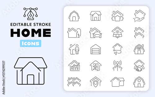 Home icons. House symbols. Set of real estate icons. Real Estate minimal thin line web icon set. Home, House, Hotel, Real estate thin line icon collection. Editable stroke
